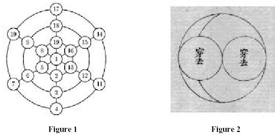 Рассмотрим некоторые примеры. На рисунке 1 показан магический круг, аналогичный магическому квадрату (Сэки). Он состоит из n концентрических окружностей и n прямых, проходящих через центр. Натуральные числа от 1 до 2n2+1 расположены на их пересечениях так, что сумма чисел, расположенных на любой окружности и в центре, равна сумме чисел, расположенных на любой из этих прямых. Эта идея взята из предшествующих китайских книг. Сэки приводит общую конструкцию магических кругов.