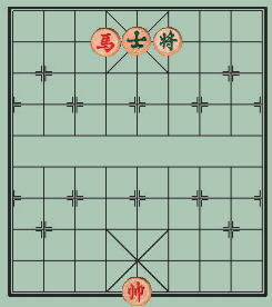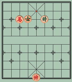 На данной диаграмме чёрные достигли наилучшей позиции: их король стоит по центру, а пушка готова дать мат. Но и красный конь тоже на правильном месте, спасая их от поражения.